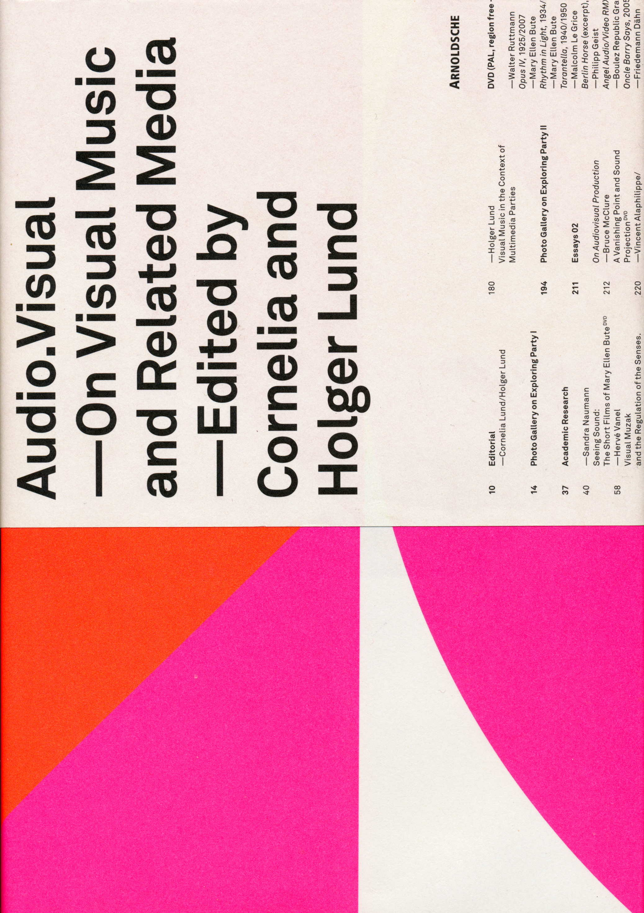 Essays 01. On visual music. Visual music : forms and possibilities / Friedemann Dähn ; Visual music / Paul Mumford ; VJing between image and sound / Laurent Carlier ; Button-pushing, egg-frying, and other performative acts / Cornelia Lund ; Visual music in the context of multimedia parties / Holger Lund --