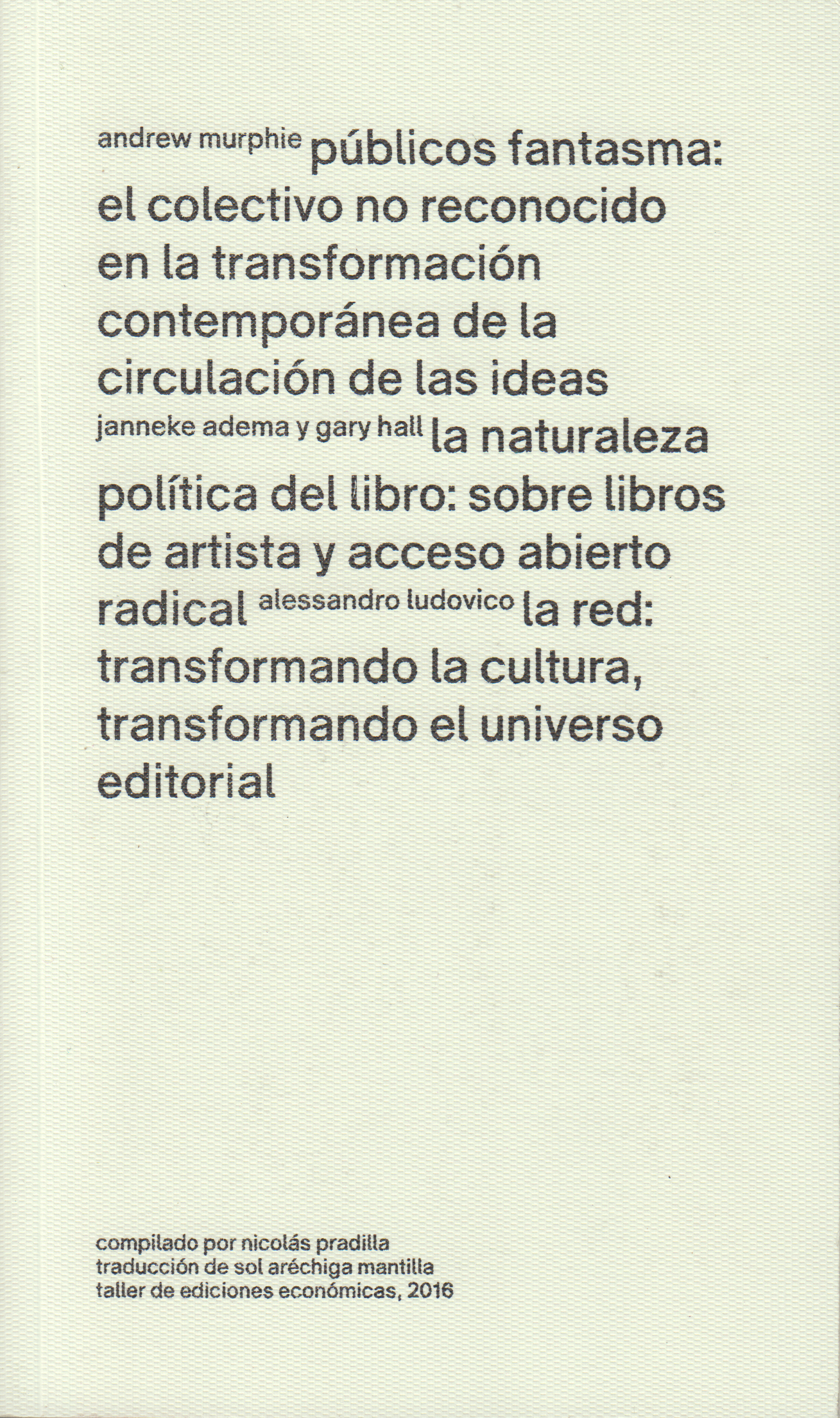 contenido 9 públicos fantasma: el colectivo no reconocido en la transformación contemporánea de la circulación de ideas andrew murphie 35 La naturaleza política del libro: sobre libros de artista y acceso abierto radical janneke adema y gary hall 97 La red: transformando la cultura, transformando el universo editorial alessandro ludovico