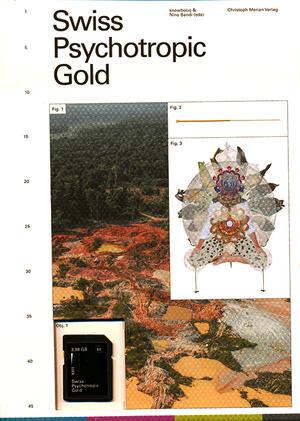 “Swiss Psychotropic Gold” is a hybrid media publication presenting the results of the artistic research project “Swiss Psychotropic Gold” (2016 –17) of the artist duo knowbotiq. Various guest contributions by invited authors and artists accompany the artistic works of knowbotiq and contributions by their collaborators Nina Bandi, Rohit Jain and Anna Frei.